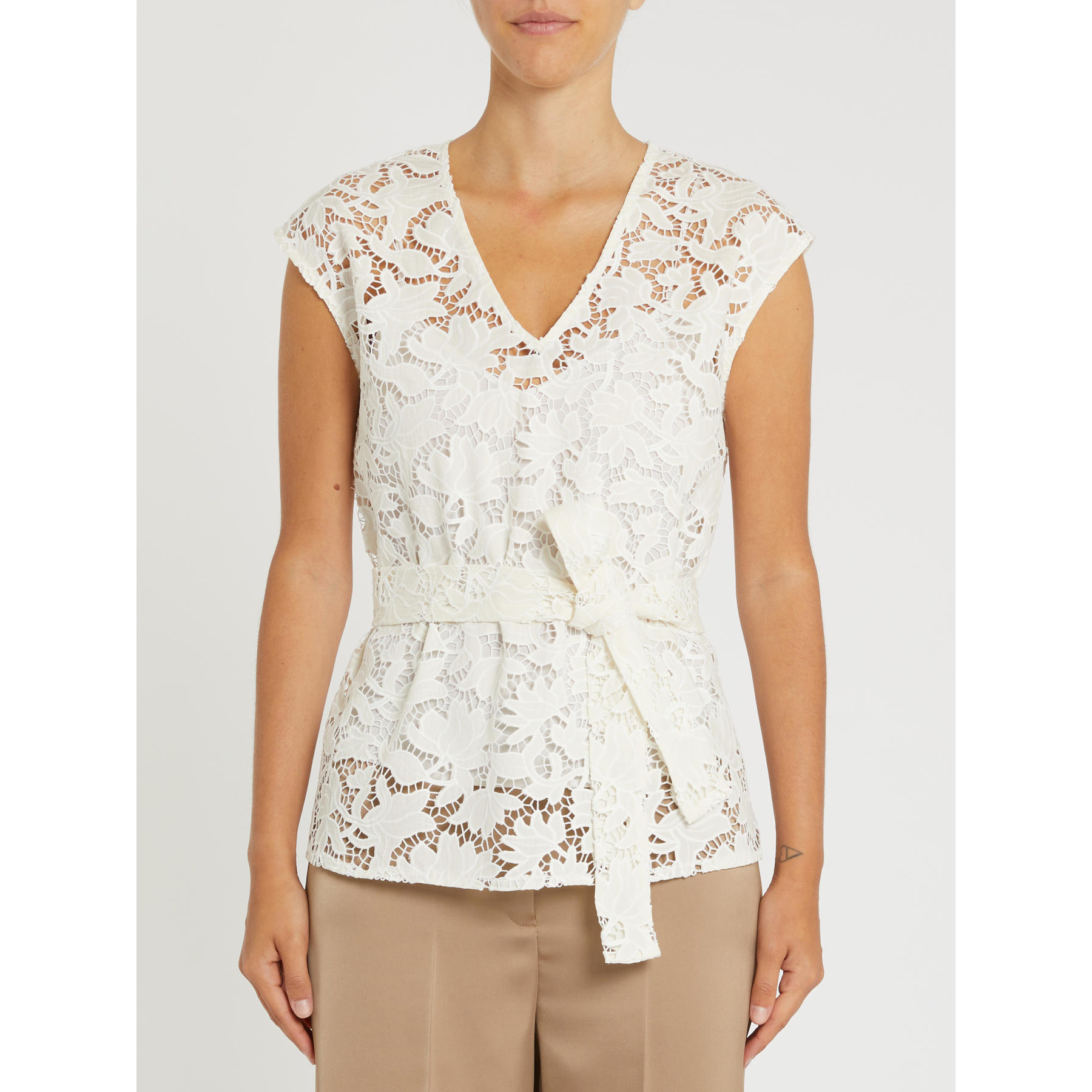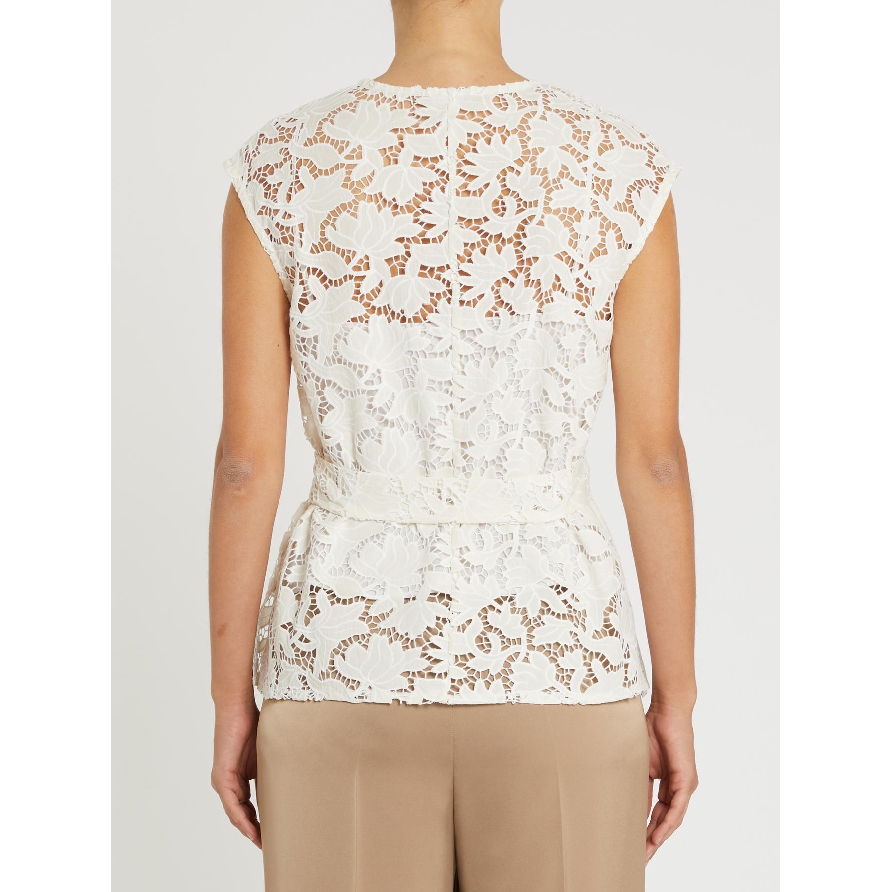 Impreziosita dalle trame ariose di ricami floreali sulla naturale freschezza del cotone, questa blusa aggiungerà il suo tocco delicato a ogni look – dal più casual al più chic.
