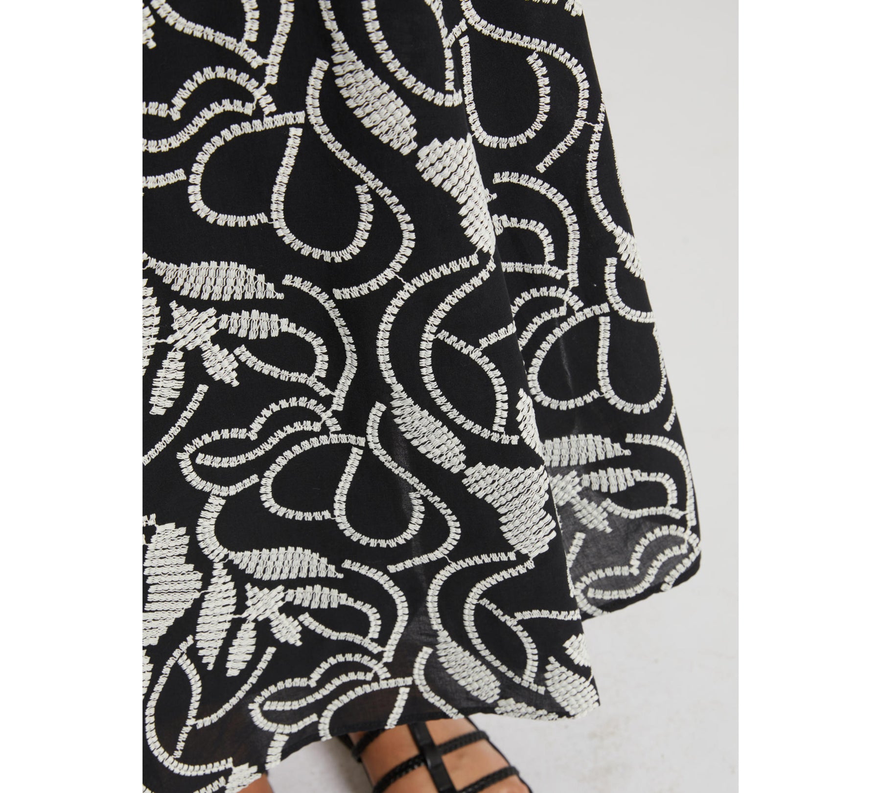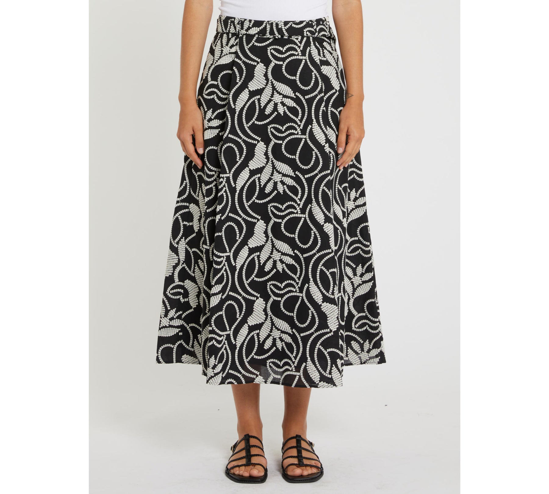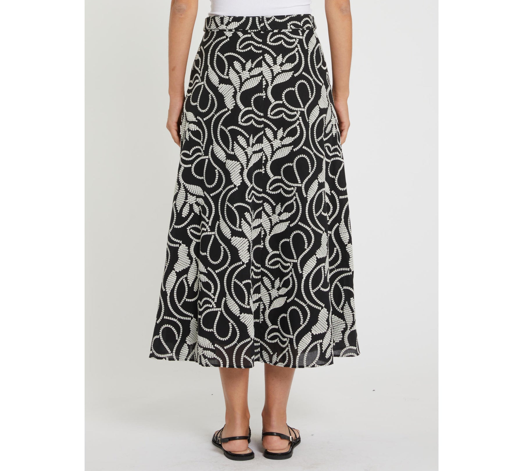 Preziosa nella sua naturale freschezza, questa gonna midi dalla silhouette bon chic è interamente ricamata a ramages grafici. Per look estivi ad alto tasso di stile.