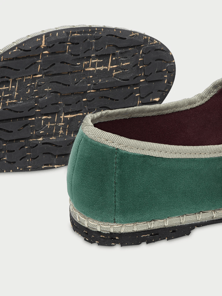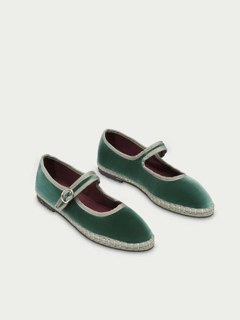 - Mary Jane in velluto verde con chiusura a fibbia verde chiaro.