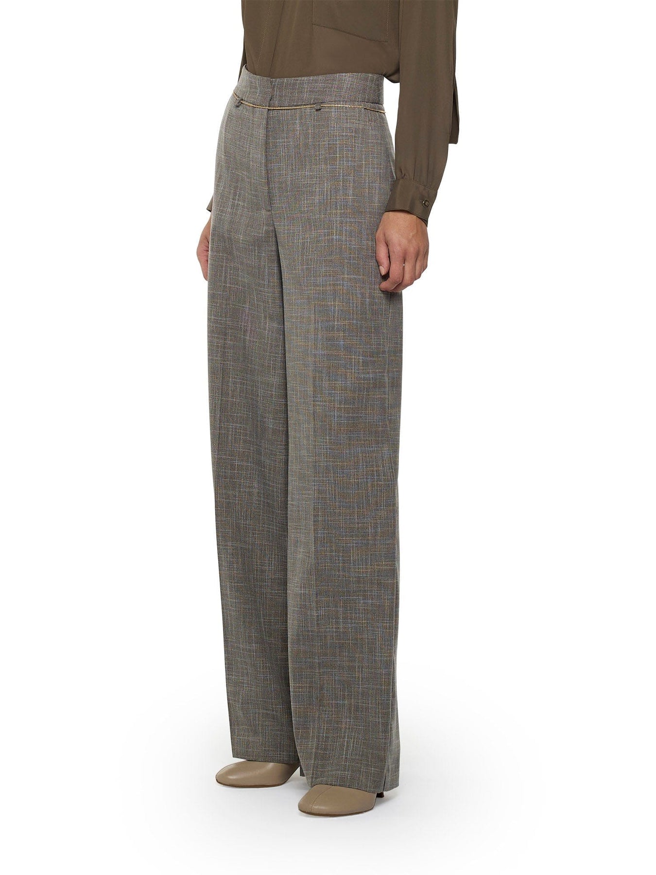 Simona Corsellini Pantaloni dritti con cintura catena in tela tramata