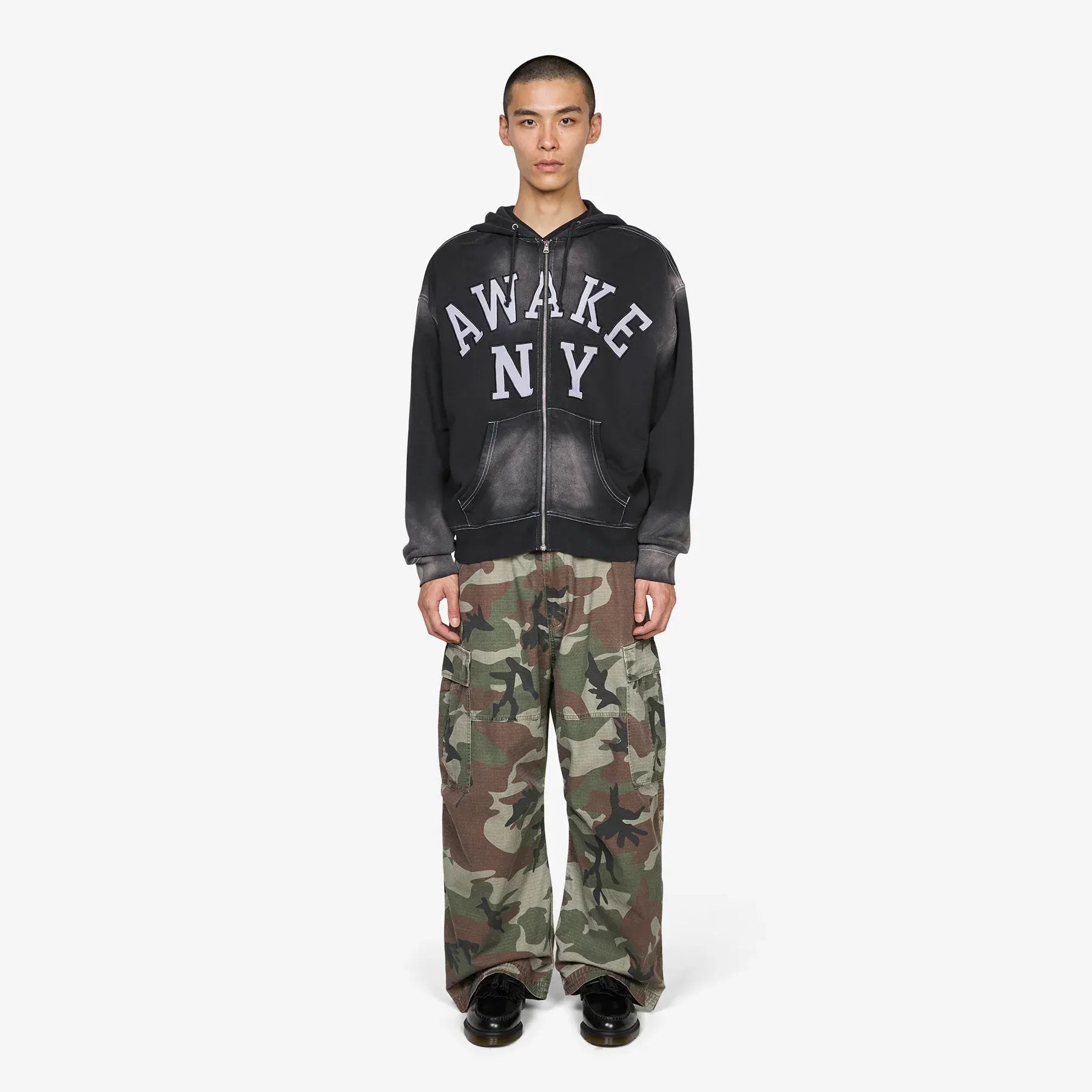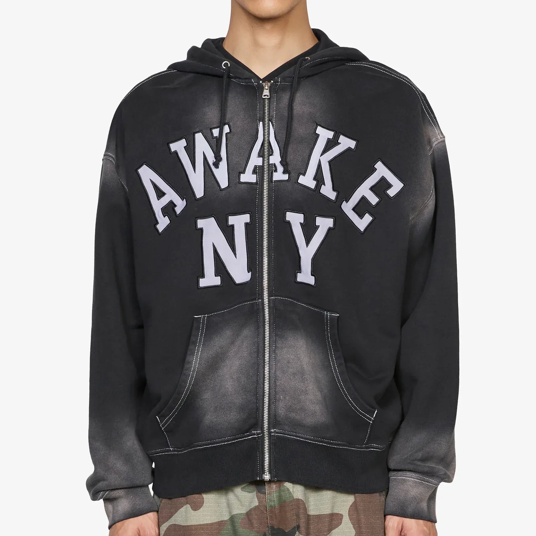 Felpa con il cappuccio, effetto vissuto presenta chiusura con zip e logo ricamato sul fronte. 100% Cotone. Regular Fit. AWKSP26HD002.