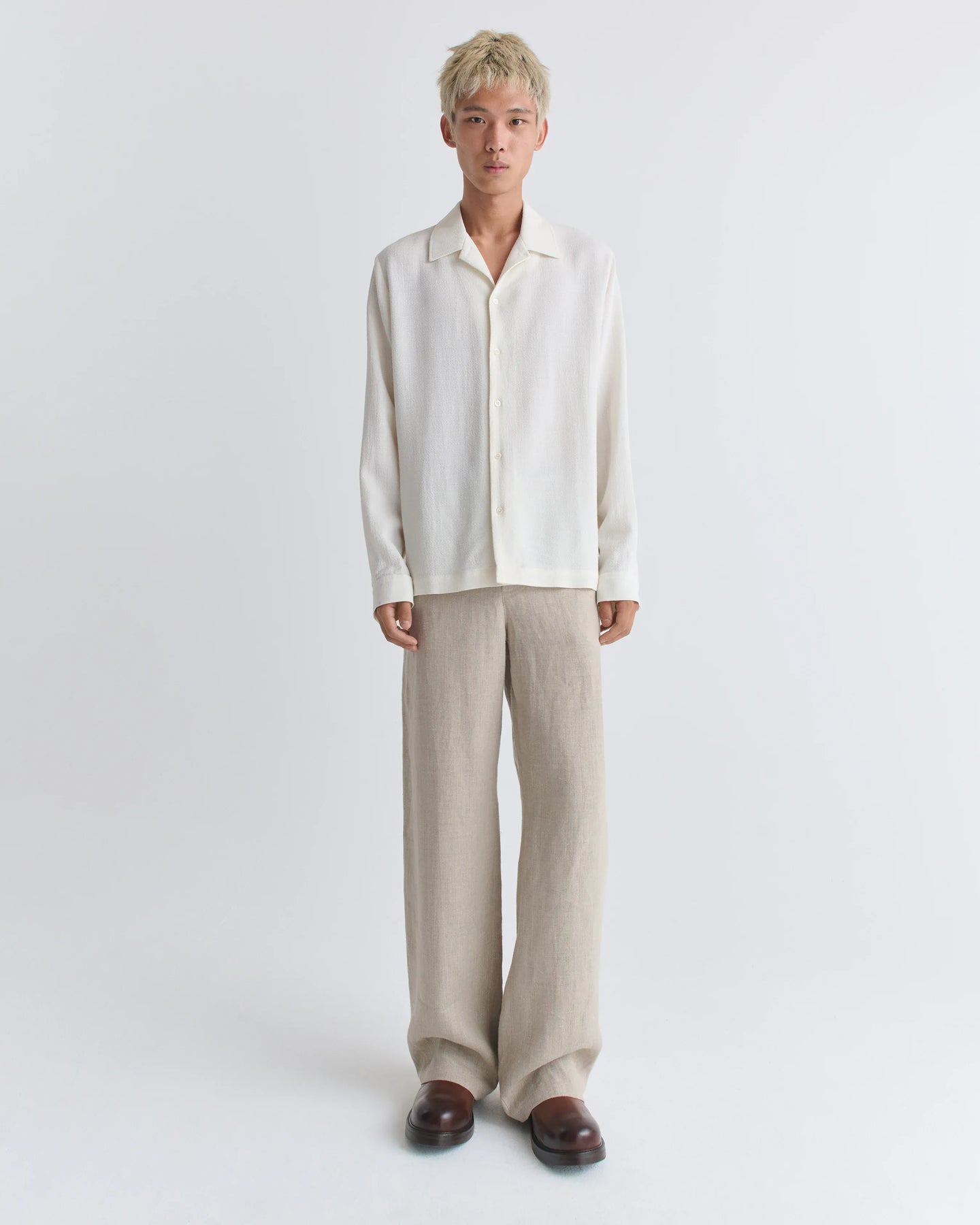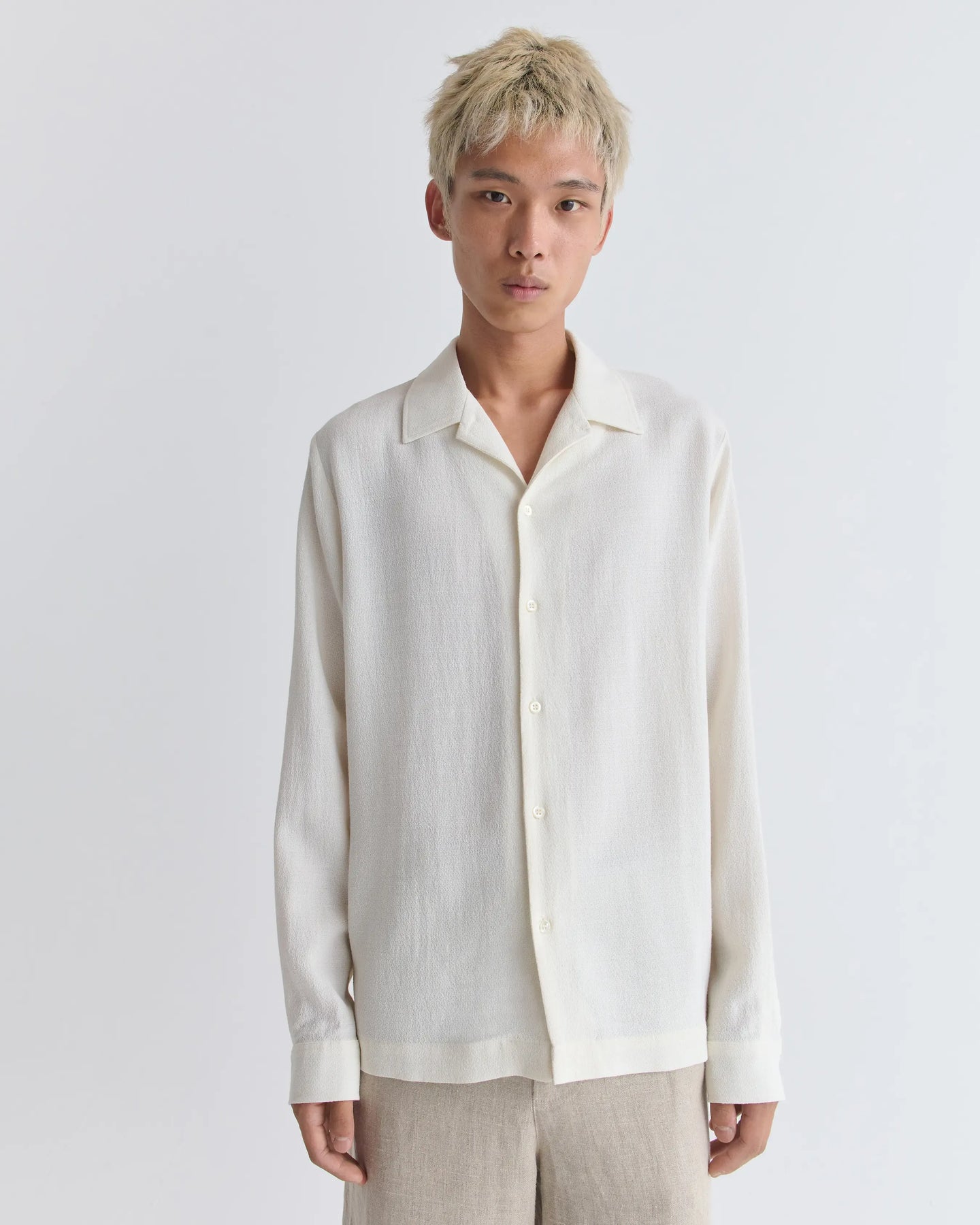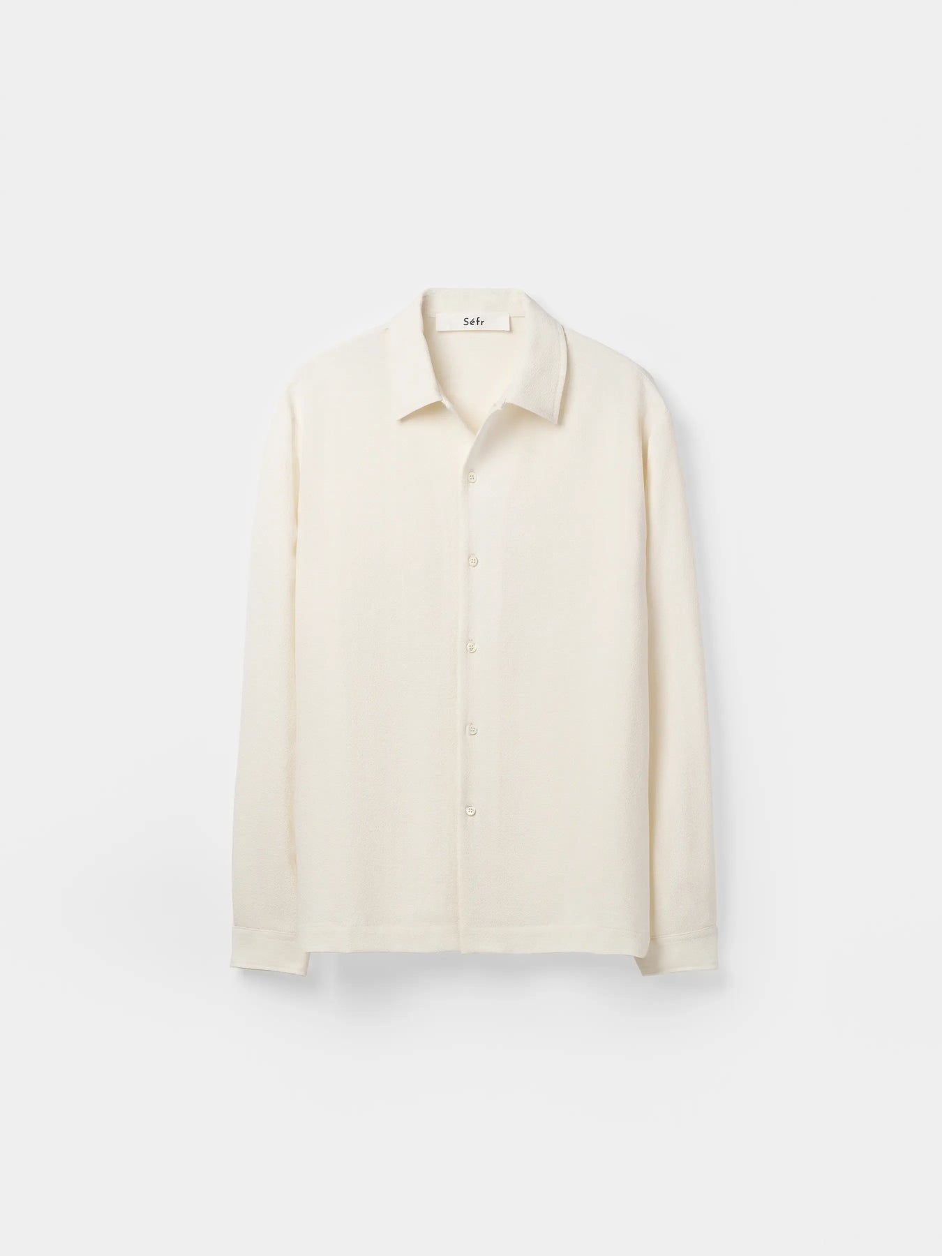 Camicia presenta un ampio colletto, abbottonatura alla francese e bottoni in madreperla. Regular fit. 60% Viscosa 40% Lana. SS24SENSEOFF.