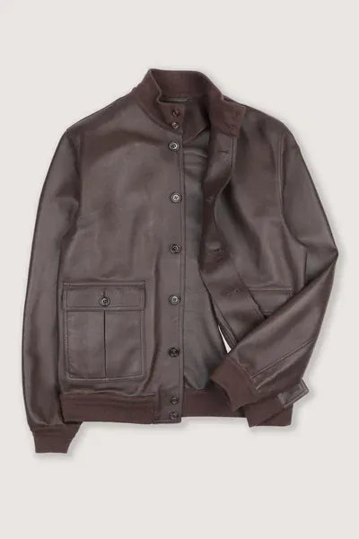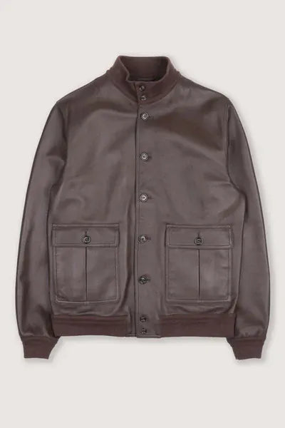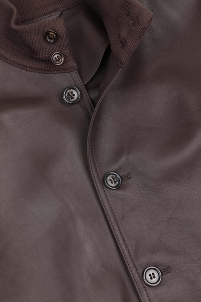 Giubbotto di pelle con chiusura a bottoni presenta tasche sul fronte. 407A.F274.