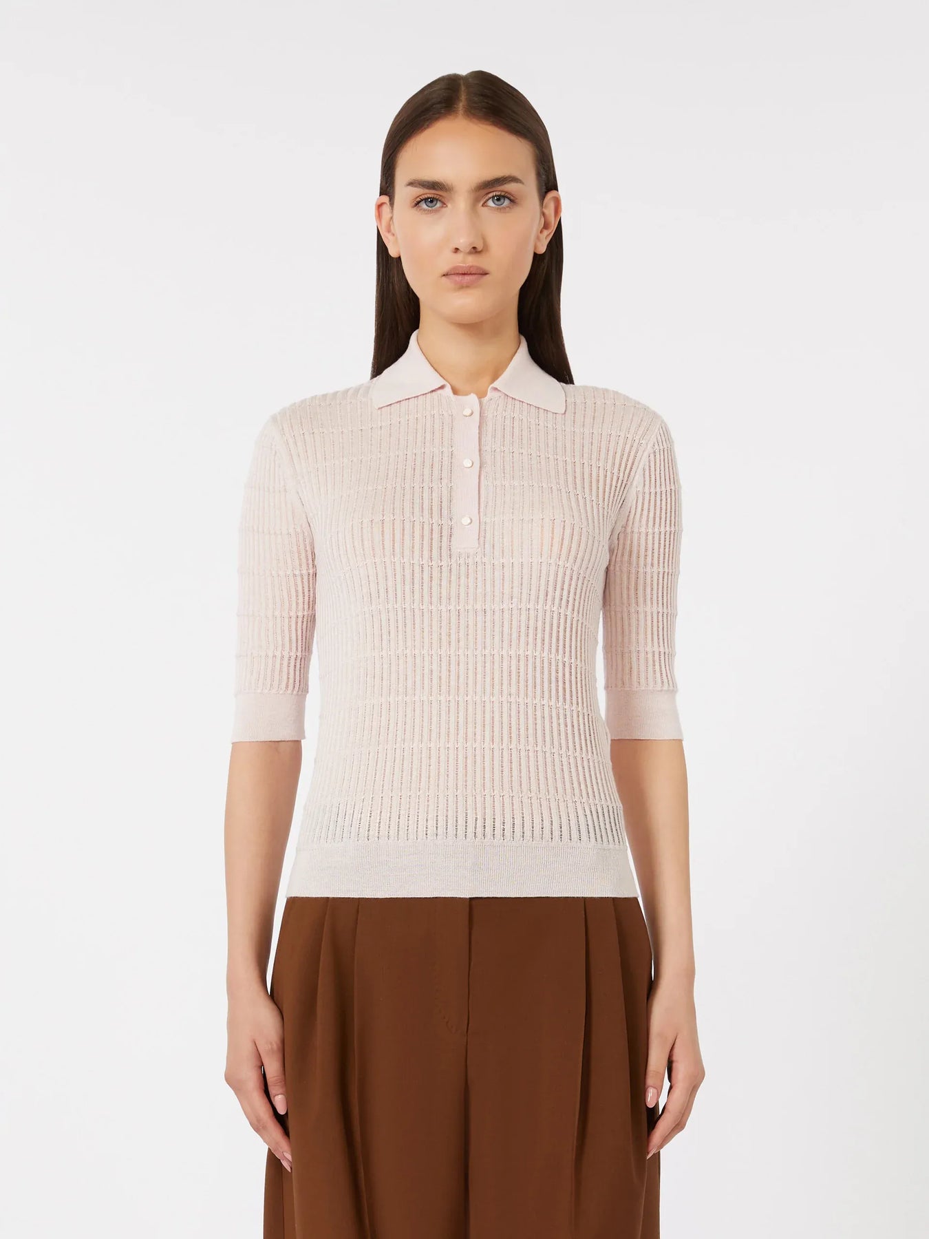 Max Mara Studio Maglia modello polo, lavorata a coste piatte con dettagli à jour.