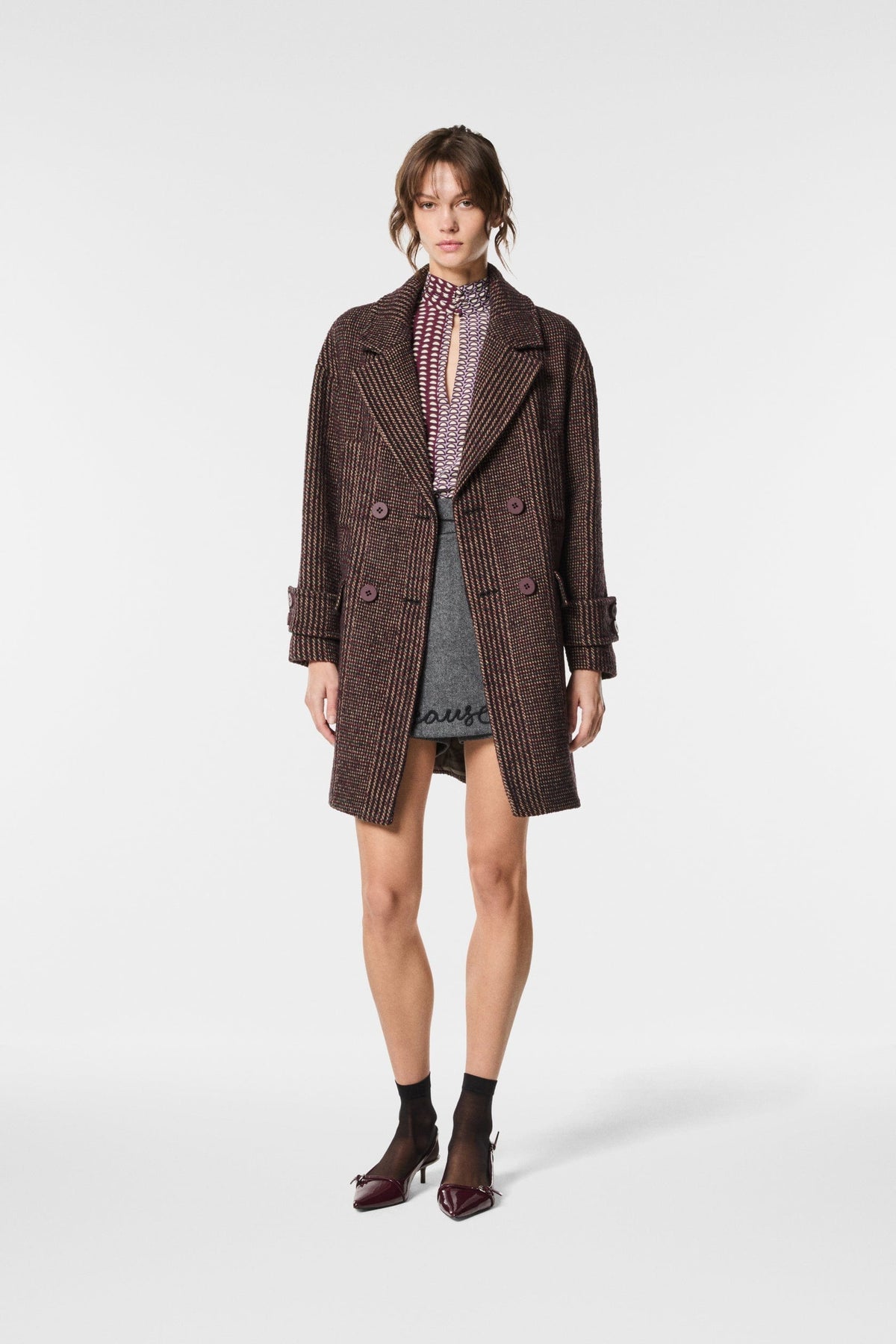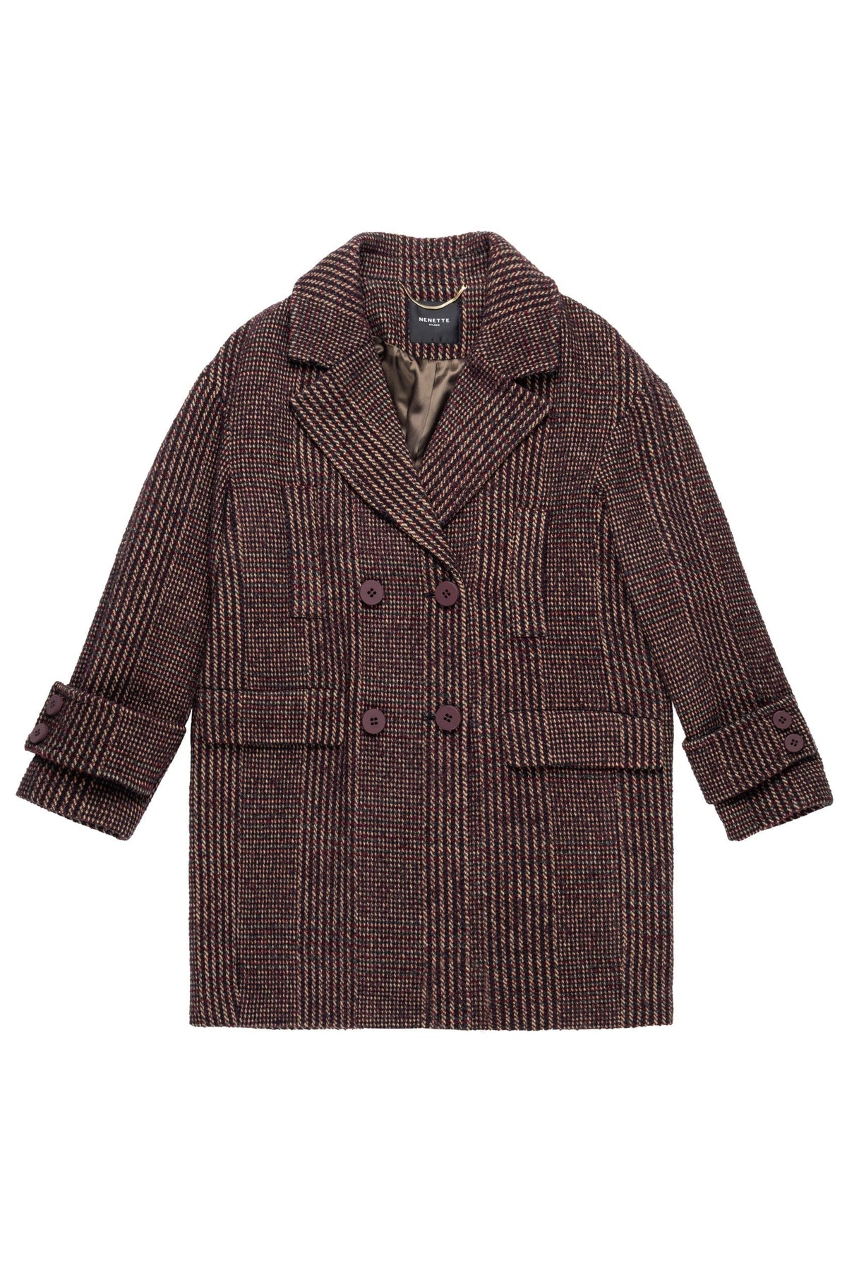 Peacoat in panno di lana con fantasia maschile, dal taglio classico e strutturato. Elegante e versatile, unisce comfort e stile senza tempo. Perfetto per look casual-chic o abbinamenti più formali, aggiunge un tocco distintivo e raffinato agli outfit invernali.