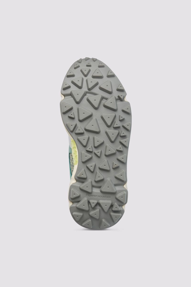 Sneaker per outdoor e urbano, tomaia e fodera in pelle e tessuto, lacci tecnici, soletta in sughero, suola leggera.