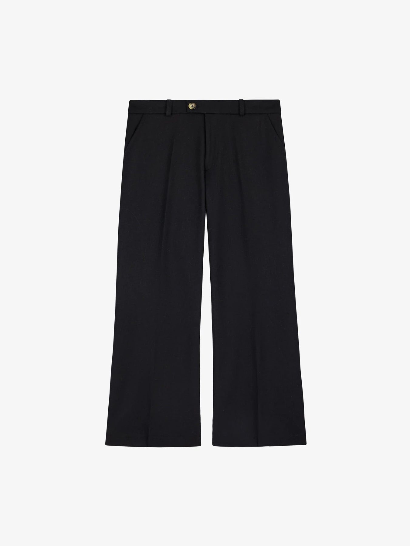 Pantalone con chiusura a bottoni e zip. Flare fit. 59% lana , 39% poliestere, 2% elastine.