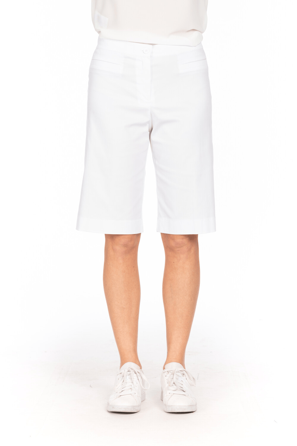 Bermuda in twill stretch leggero con vita regolare: una proposta fresca e sofisticata per la stagione calda.