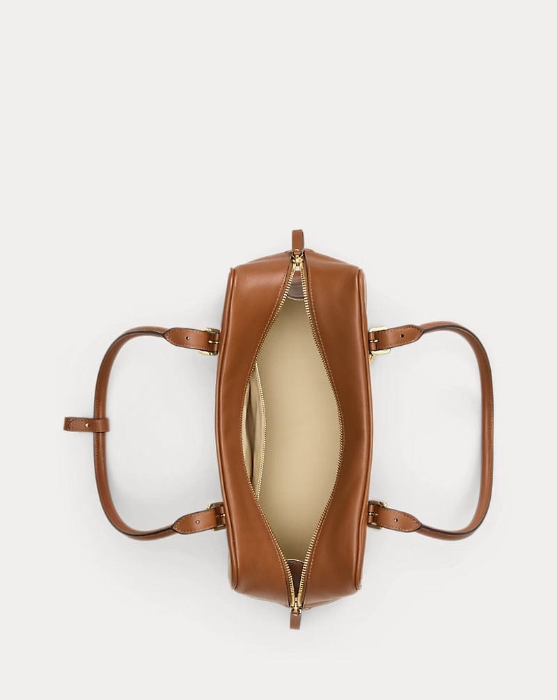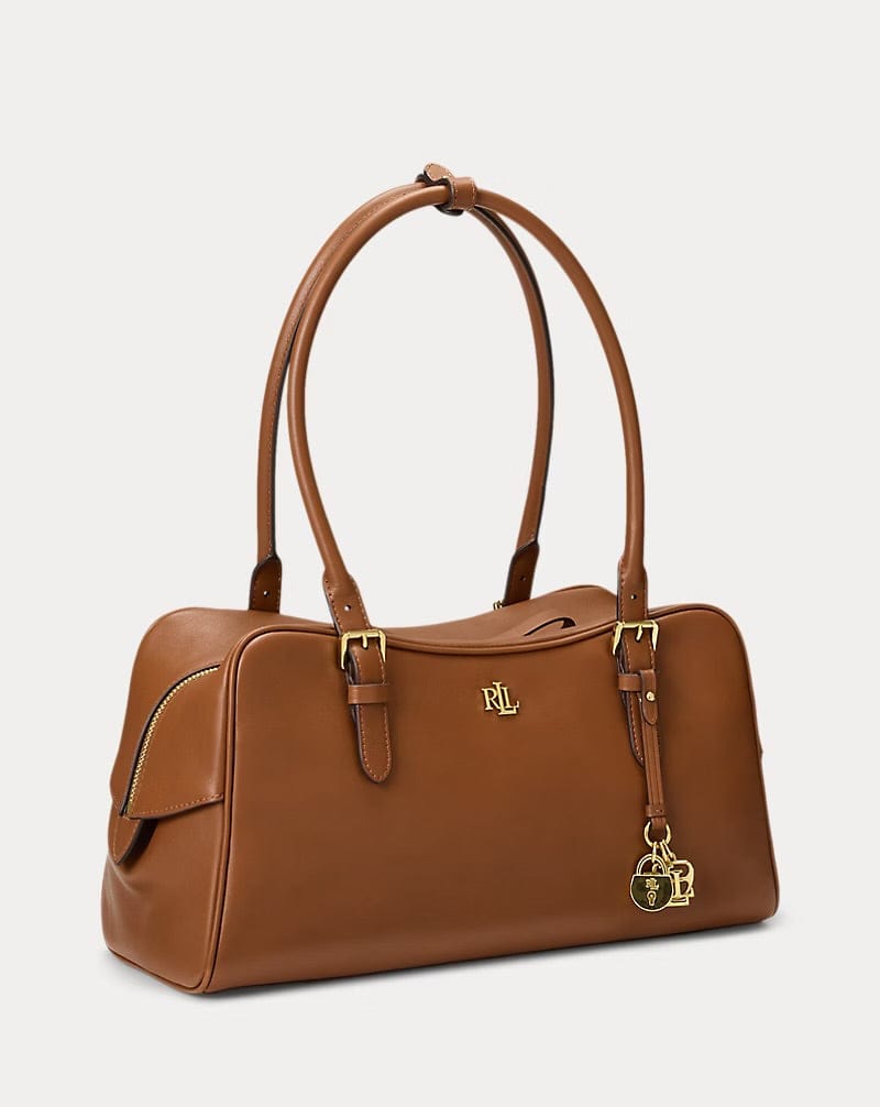 Logo "LRL" con finitura ottone sul davanti. Esclusiva placca con finitura ottone e logo "Lauren Ralph Lauren est. 1967" all'interno. Tracolla rimovibile in pelle con logo, lucchetto e ciondoli di ispirazione equestre con finitura ottone.