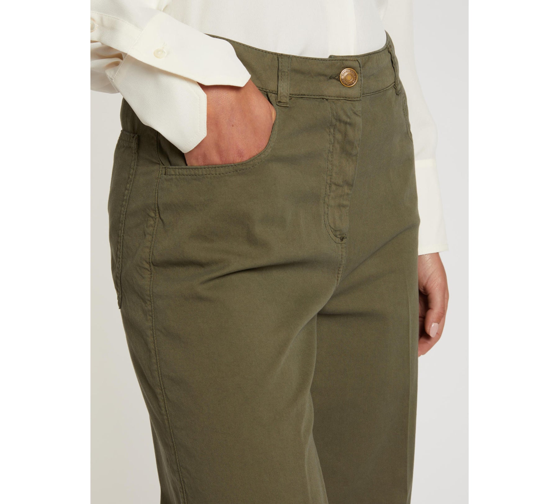 - Tasche arrotondate sul davanti, applicate sul retro