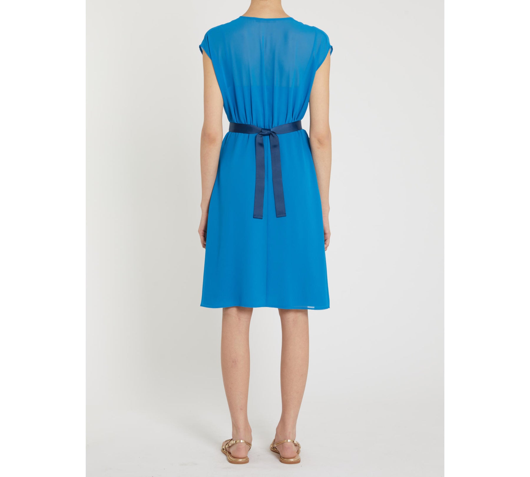 Con fiori grafici e colore pieno sulla delicatezza della georgette, questo abito dalla silhouette bon chic declina un’eleganza classica in una fresca versione estiva.