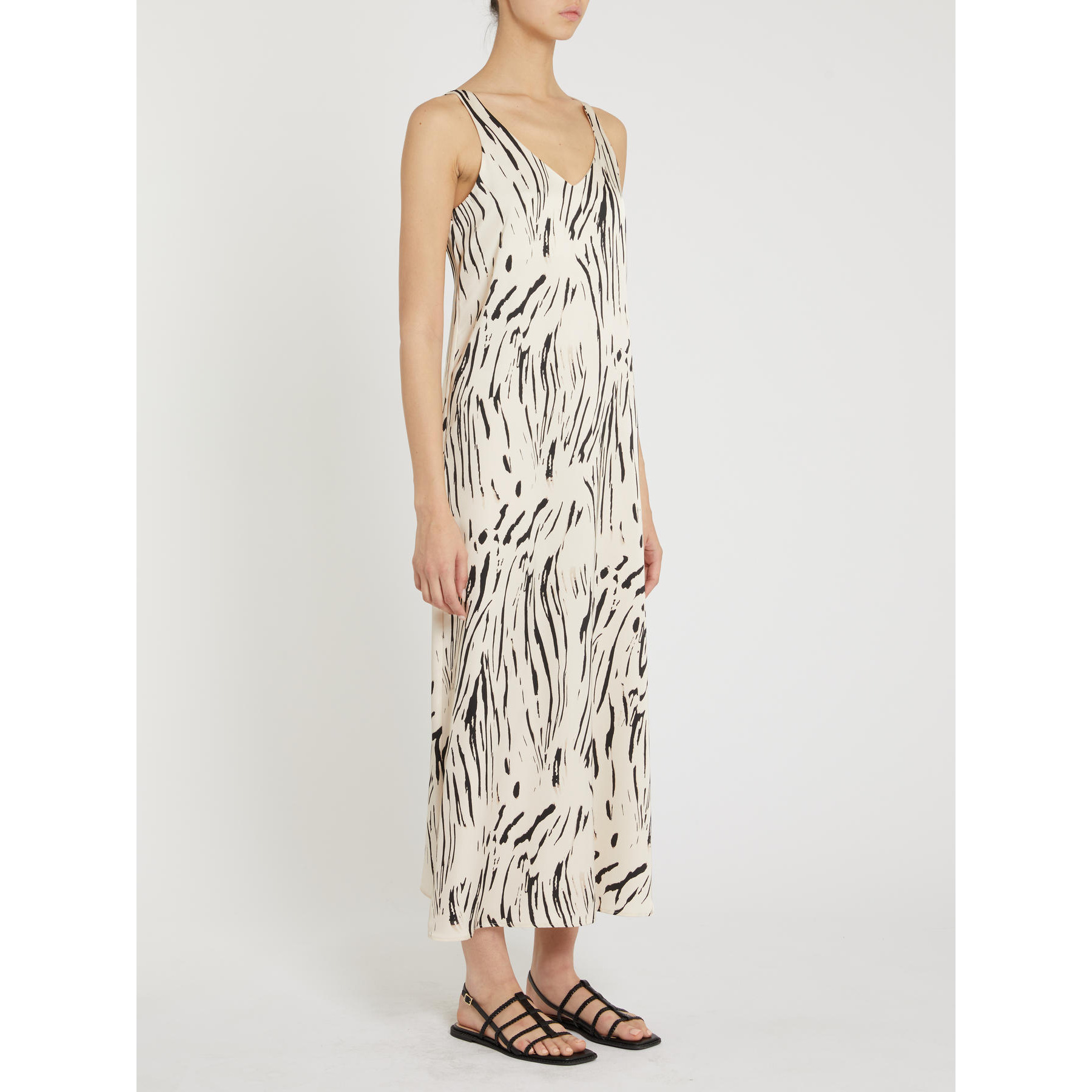 Elegante nel suo design pulito, questo abito midi in raso è il perfetto interprete di una raffinata semplicità: da sfoggiare in mille occasioni.