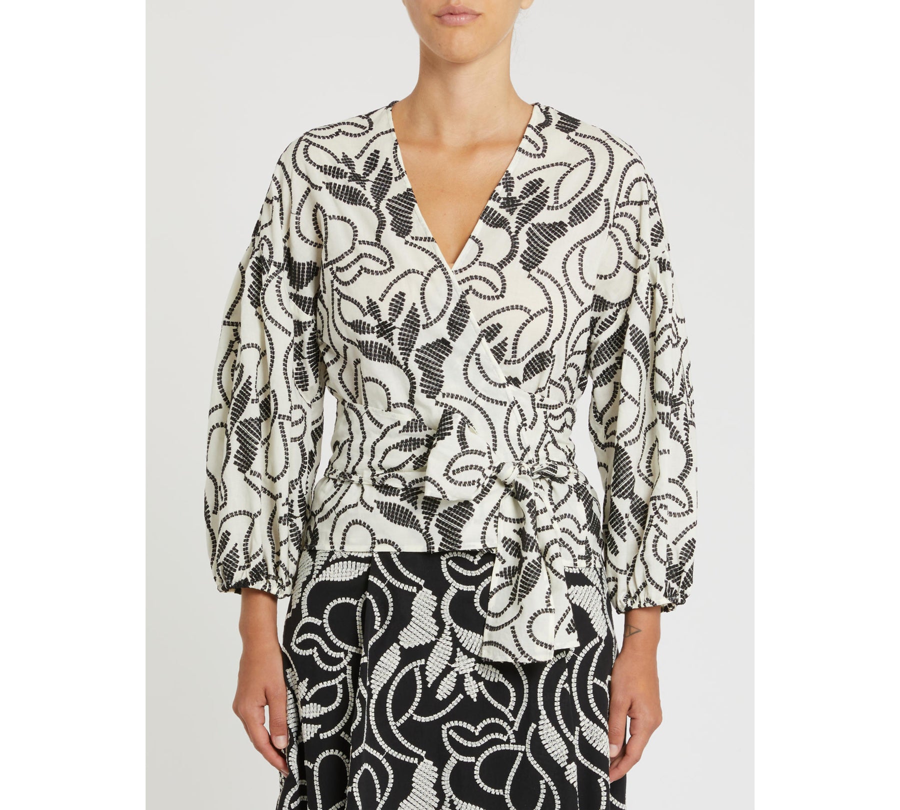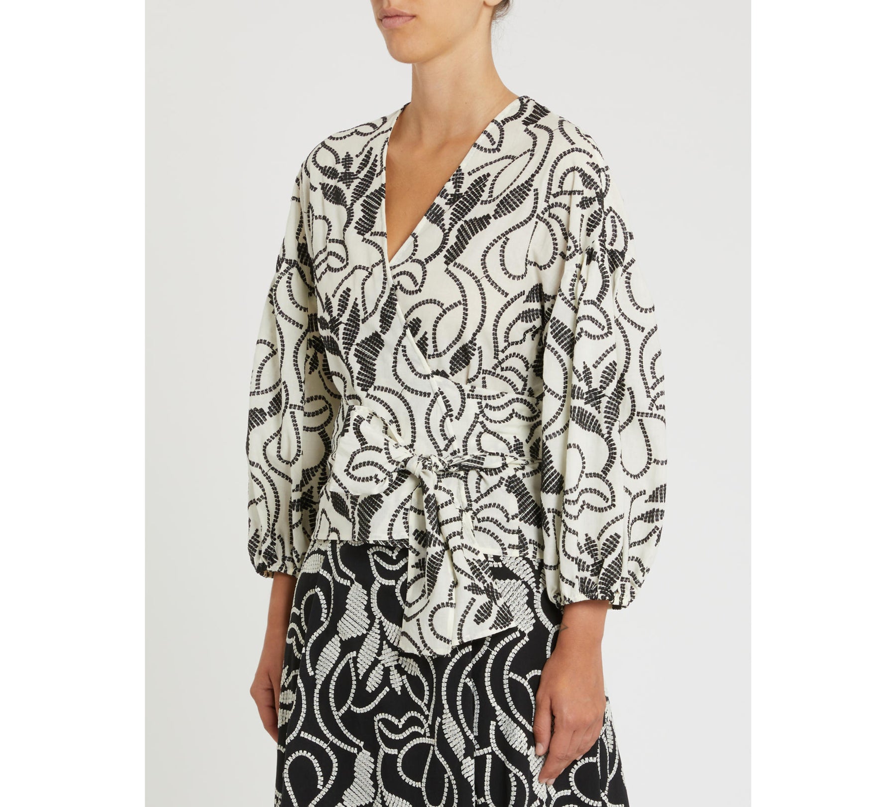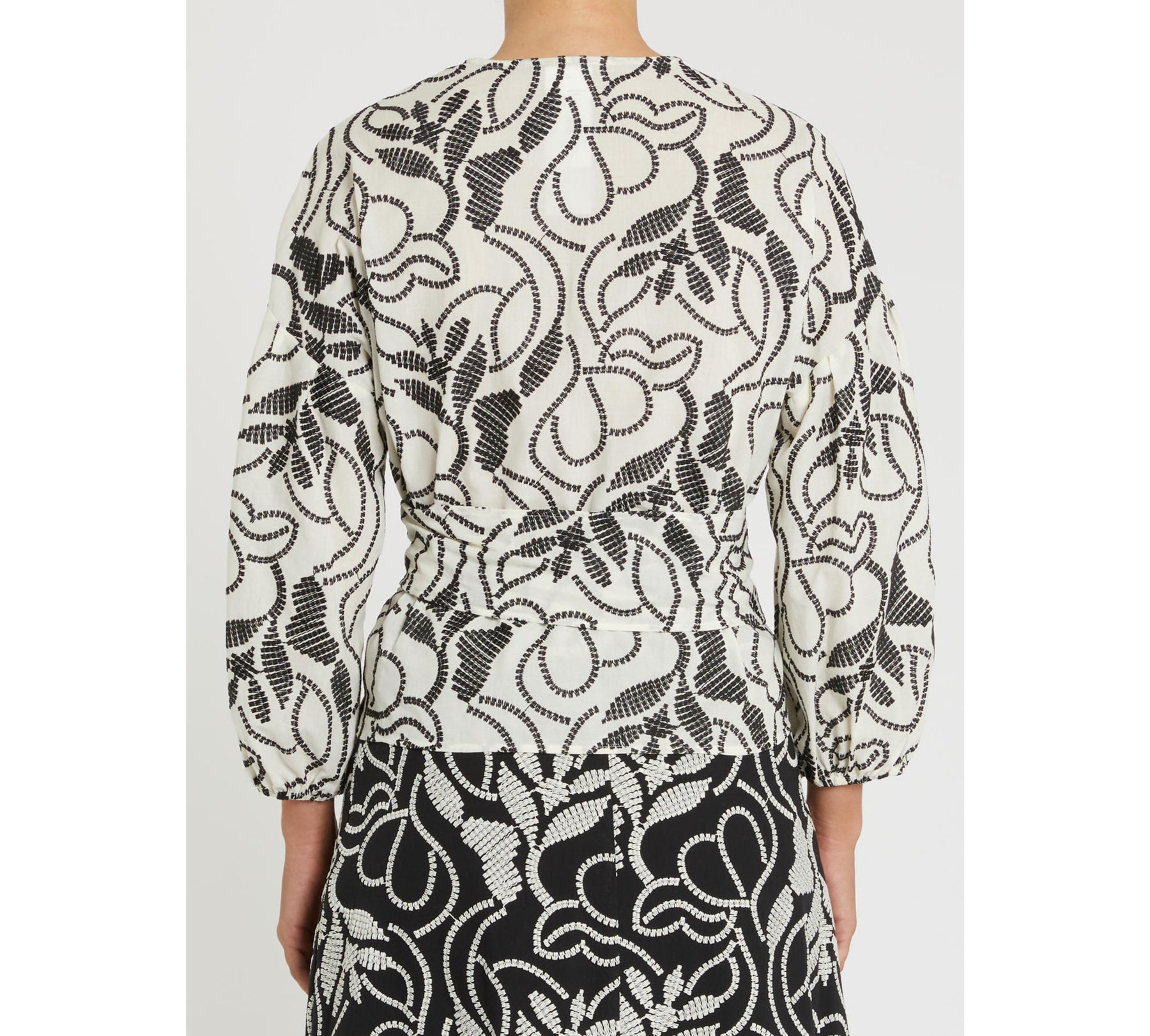 Impreziosita da ricami che rielaborano in chiave grafica un motivo a ramages, questa blusa dalla silhouette femminile aggiungerà agli outfit estivi un’abbondante dose di vibrazioni boho chic.